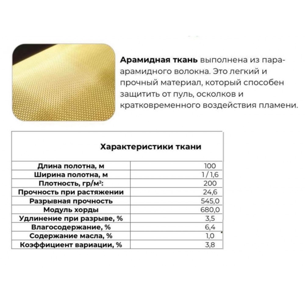 Основные характеристики кевларной арамидной ткани
