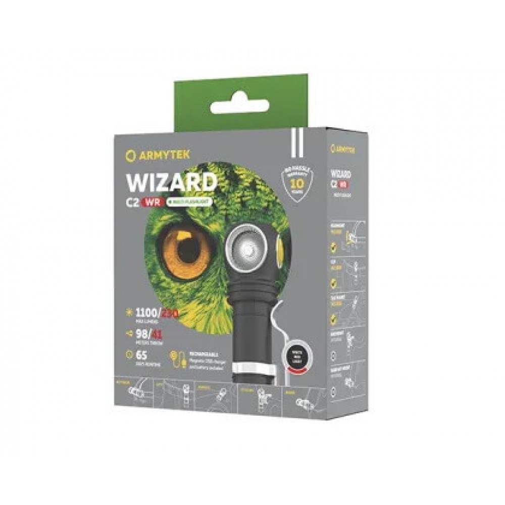 - Armytek Wizard C2 WR Magnet USB предоставляет широкий выбор использования с двумя цветами светодиодов: белым и красным. Белый свет обеспечивает яркое освещение с высокой дальностью, а красный свет идеально подходит для использования в условиях низкой видимости, таких как ночная охота или рыбалка.