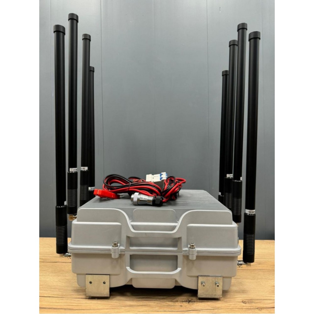 РЭБ "Ромашка-8" - эффективное устройство для подавления сигналов FPV-дронов, предназначенное для защиты различных автотранспортных средств, как легких, так и тяжелых. Конструкция включает в себя прочный алюминиевый корпус, который устойчив к механическим повреждениям и воздействию внешней среды, а также оснащена внешними антеннами для лучшей производительности.