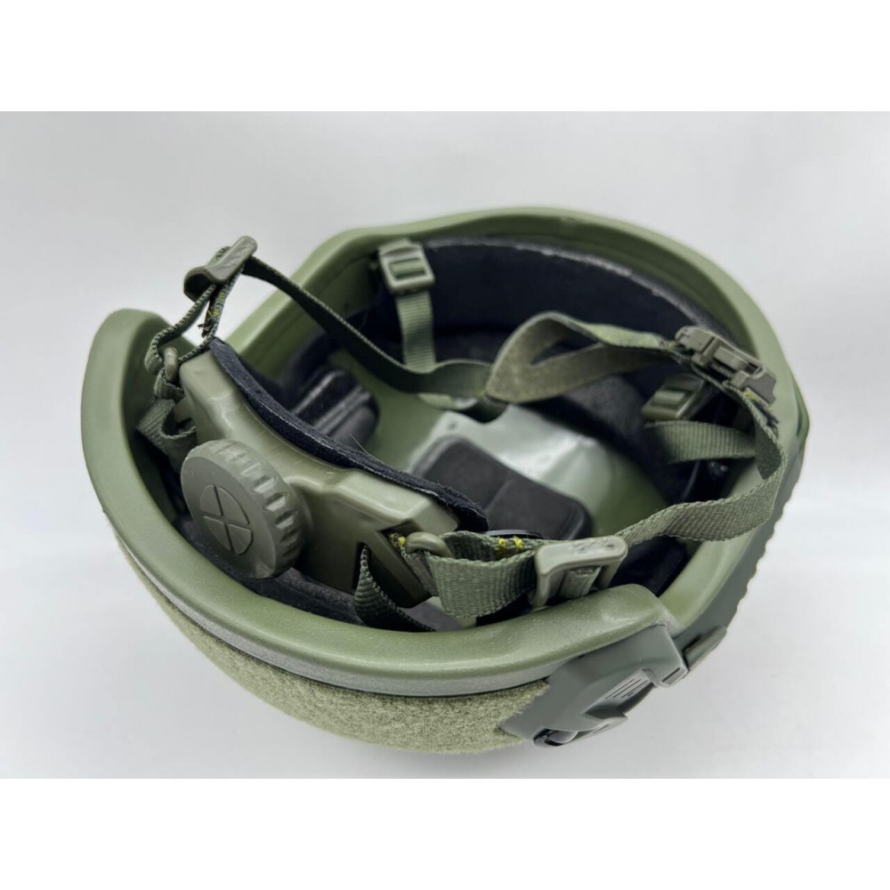 Баллистический шлем имеет четырехточечную систему креплений шлеек, регулируемую по объему и подбородку и демпфирующую систему подкладок (каждая вставка состоит из 2-х слоев: первый обеспечивает комфорт, второй поглощает удары) для смягчения заброневого воздействия при попадании.
