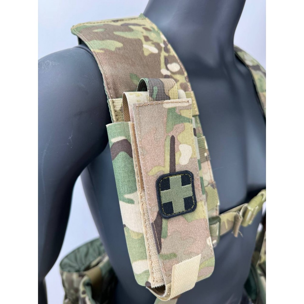 - Возможность установки подсумков как на плечевых лямках, так и на спинной части.